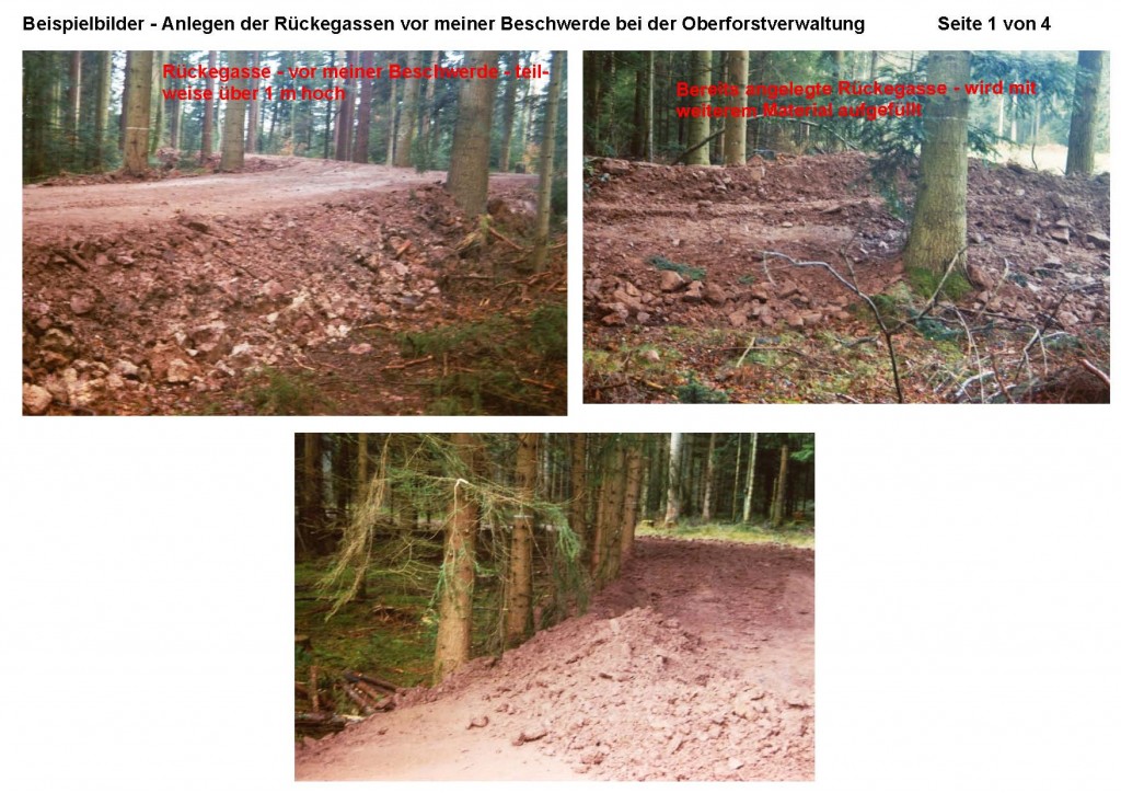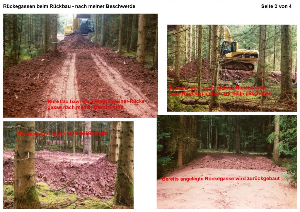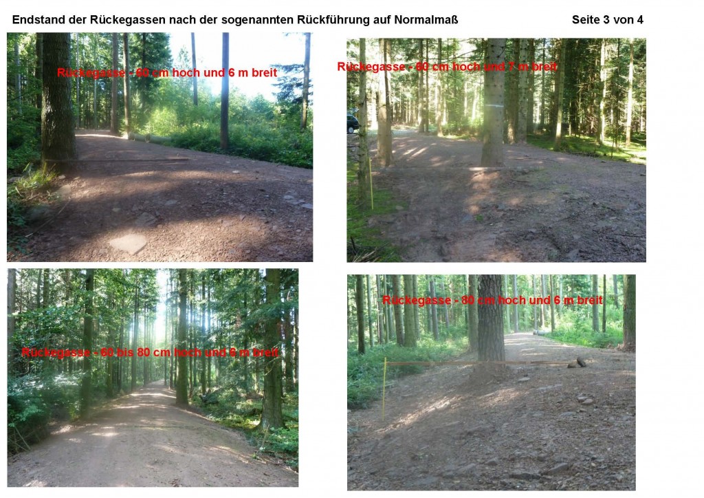 3. Aber die Höhe der Rückegassen ist völlig unakzeptabel. Er hat angeordnet, dass kein weiteres Material mehr angefahren werden darf und dass die bereits aufgefüllten Rückegassen auf das zulässige Höhenmaß erniedrigt werden.