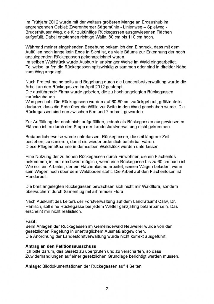 Danach wurde nochmals eine 2. Petition beim Landtag eingereicht, die ebenfalls abschlägig beschieden wurde: